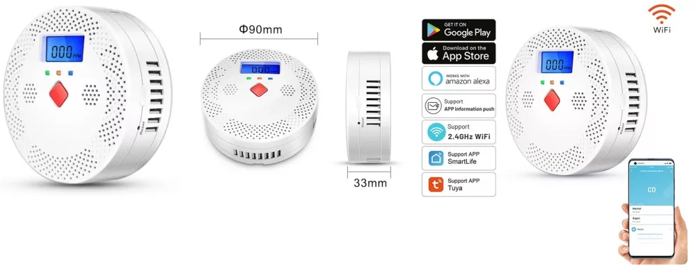 - Intelligens otthoni integráció: A Tuya WiFi intelligens szén-monoxid-érzékelő kompatibilis a Tuya intelligens otthoni platformmal, lehetővé téve a zökkenőmentes integrációt és vezérlést bárhonnan otthonában.