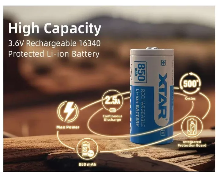 - Feszültség: 3,7 V- Akkumulátor kapacitása 850mAh- Egyéb megnevezés: 16340- Méret: 16mm x 32mm- Súly: 38gr