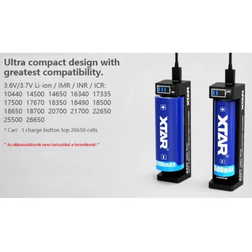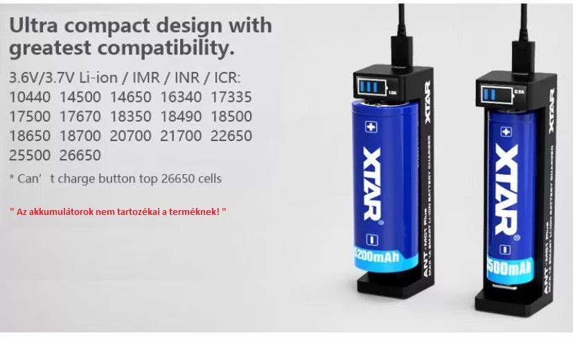 Tölthető akkumulátorok mérete: 10440, 14500, 14650, 16340, 17335, 17500, 17670, 18350, 18490, 18500, 18650, 18700,
