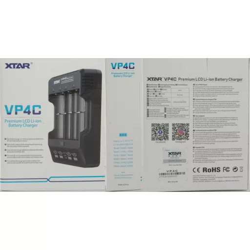 - A VP4C egy okos, négycsatornás, LCD-kijelzős Li-ion akkumulátor töltő.