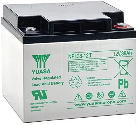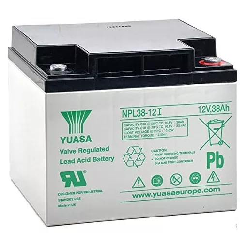 NPL38-12I 12V/38Ah - tartalék áramforrás, gondozásmentes, VRLA, teljesen zárt YUASA márkájú zselés akkumulátor. AGM technológia. Szünetmentesekhez, riasztókhoz, tűzvédelmi eszközökhöz.