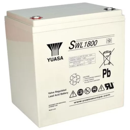 SWL1800 12V/57Ah - tartalék áramforrás, gondozásmentes, VRLA, teljesen zárt YUASA márkájú zselés akkumulátor. AGM technológia. Szünetmentesekhez, adatközpontokhoz.