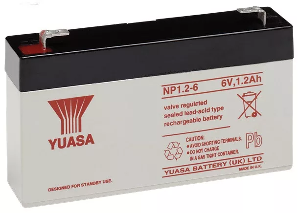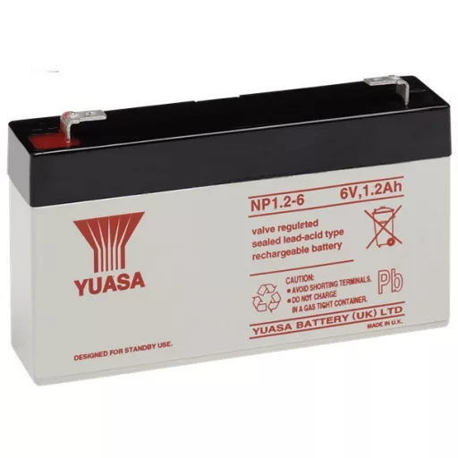 A YUASA NP1.2-6 6V 1,2Ah AGM (Absorbent Glass Mat) technológiával gyártott karbantartás mentes ólomsavas zselés akkumulátor. Kiváló minőség és megbízhatóság a jellemzője. Az ólomlemezek és elektrolit megbízható tápellátást biztosítanak a legtöbb feszültségtámogatási rendszernek, például az UPS-nek vagy a vészhelyzeti áramellátásnak. Rendkívül erős teljesítmény-visszanyerő tulajdonság, alacsony önkisülési jellemző így számos pozícióba telepíthető mint pl. riasztórendszerek, távközlési berendezések, védelmi rendszerek, orvosi felszerelés...stb.